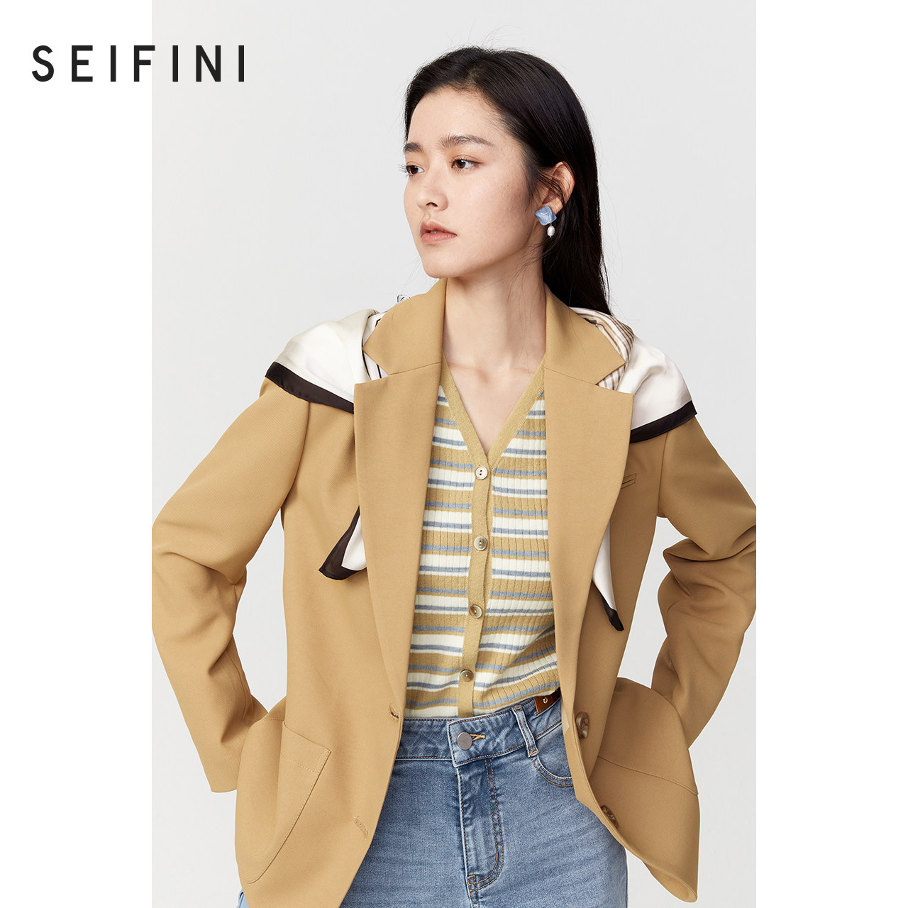 (Island Commemoration) The same style of Shifanli khaki suit jacket women's spring new 3D2210031 in shopping malls