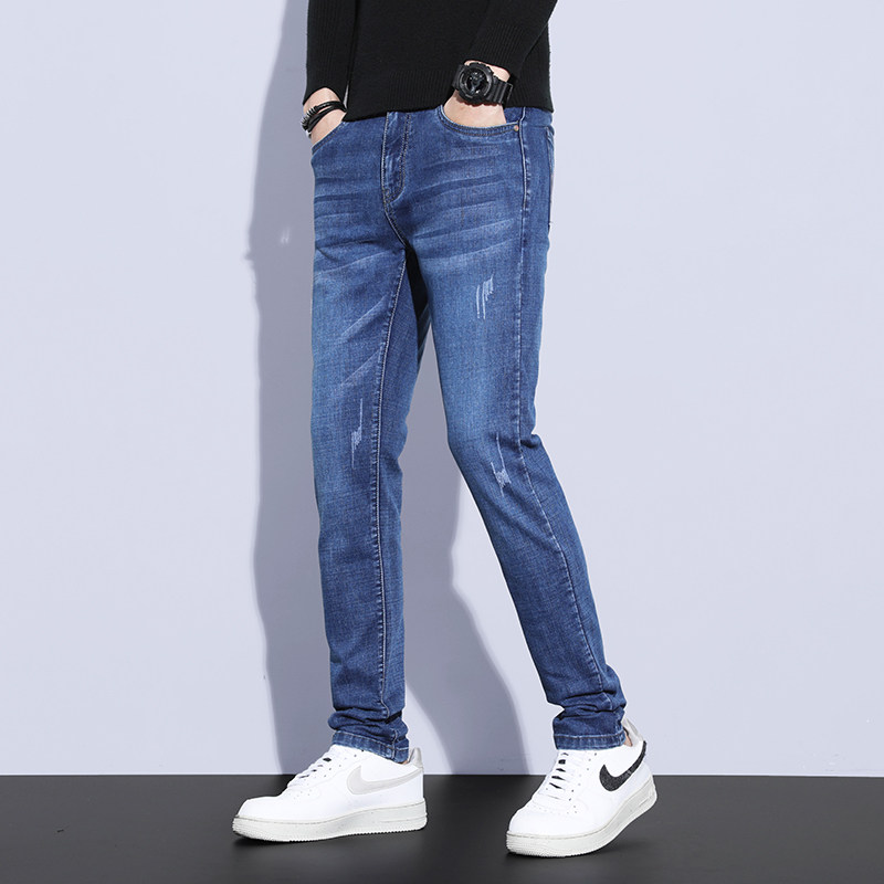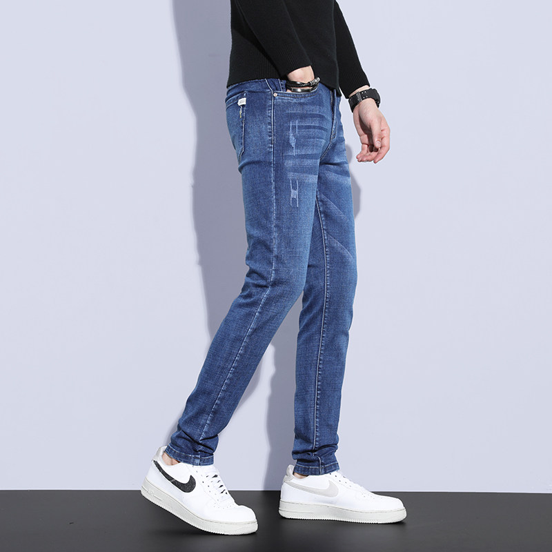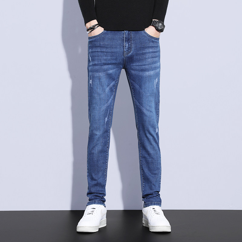 Hong Kong spring blue jeans men spring and autumn fix straight tube 2022 Korean trend high - end elastic leisure trousers