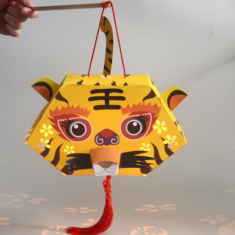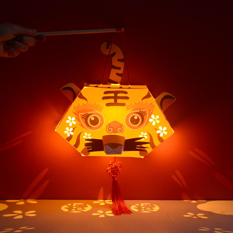New Year's Spring Festival Tiger Lantern Diy Material Bag Cartoon Handmade Kindergarten Children's Full Word Projection