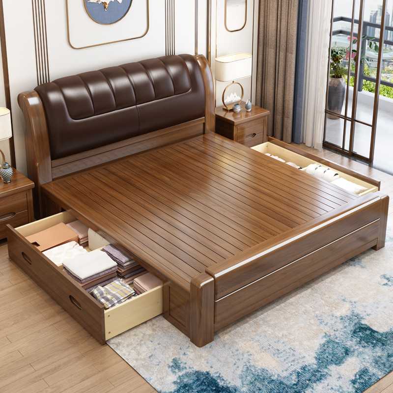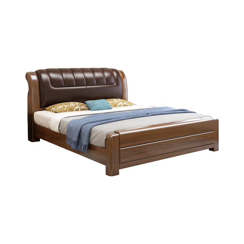 New Chinese walnut solid wood bed 18 meters bedroom home double bed modern minimalist 15 meters leather soft bag
