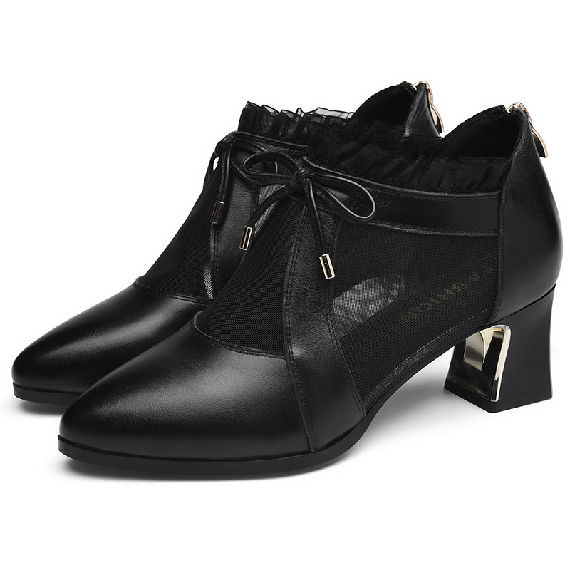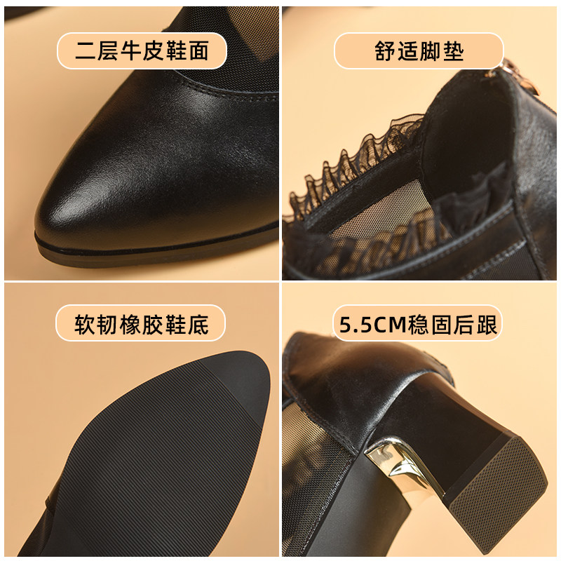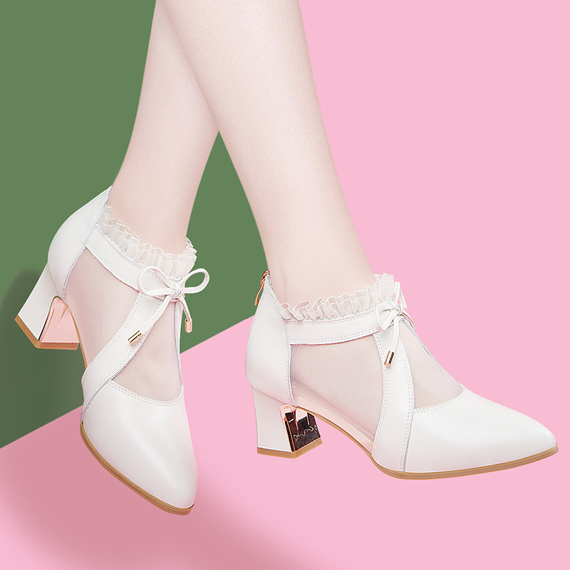 Baotou sandals women's medium heel thick heel 2022 new women's shoes spring and autumn summer single shoes mesh women's leather shoes high heels