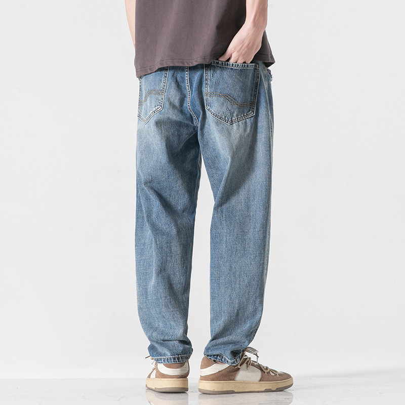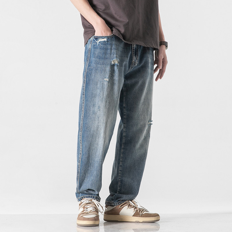 Breaking Hole Jeans Men's Straight Barrel Loose Plus Fattening Up Code Broadlegged Pants Male Trend 100 Hitch Ride overalls Harun pants