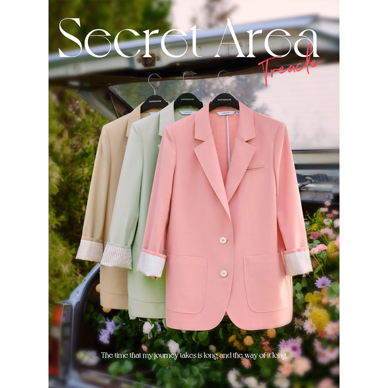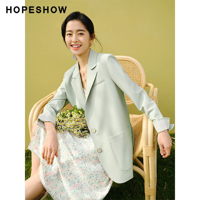 Zhang JiNi Tongan Red Cuff Spring 2022 New Women's Clothing Turnover H-Type Display Slim Fit Green Suit Jacket