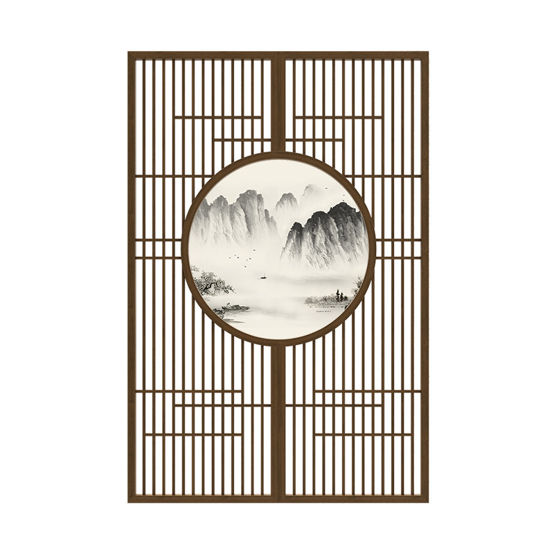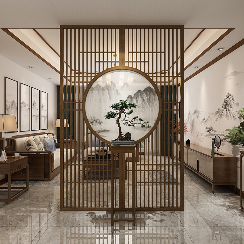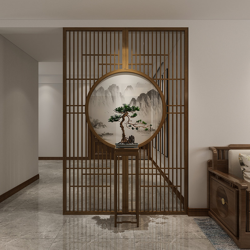 New Chinese Landscape Screen Living Room Solid Wood Decoration Partition Wall Hotel Log Genguan Villa Custom Hollowed-out Base Screen