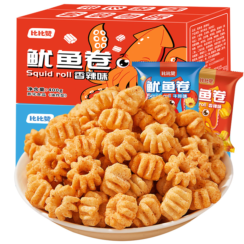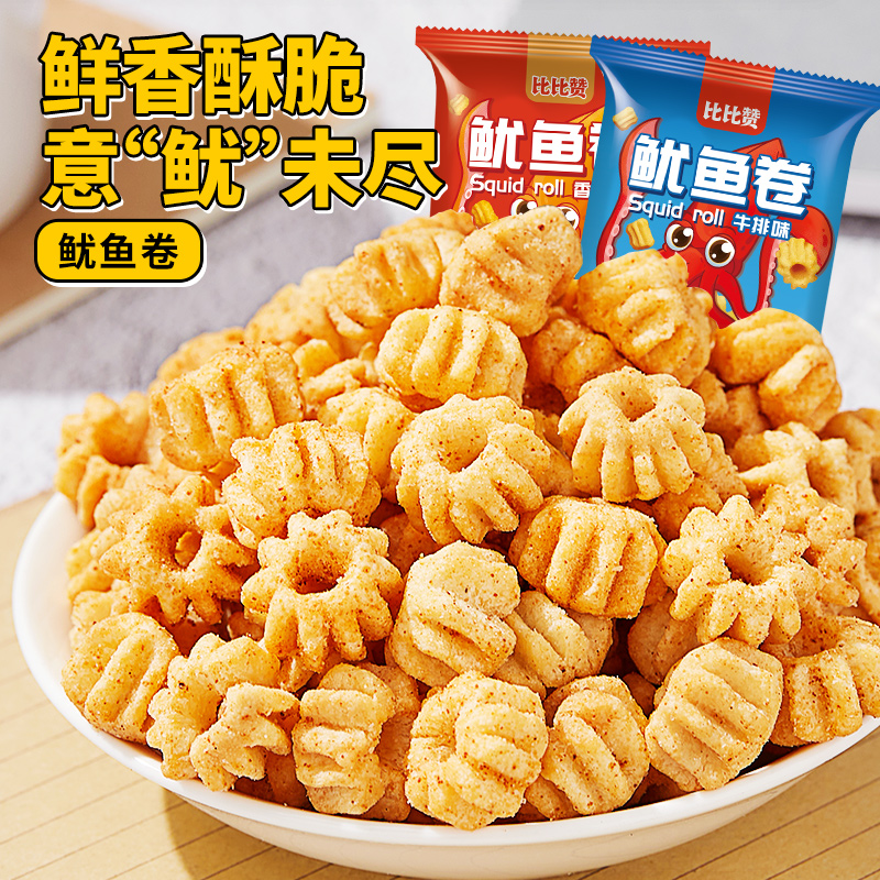 Bibizan squid roll rice cake net red gluttonous snack 8090 nostalgic snack leisure puffed food snack big