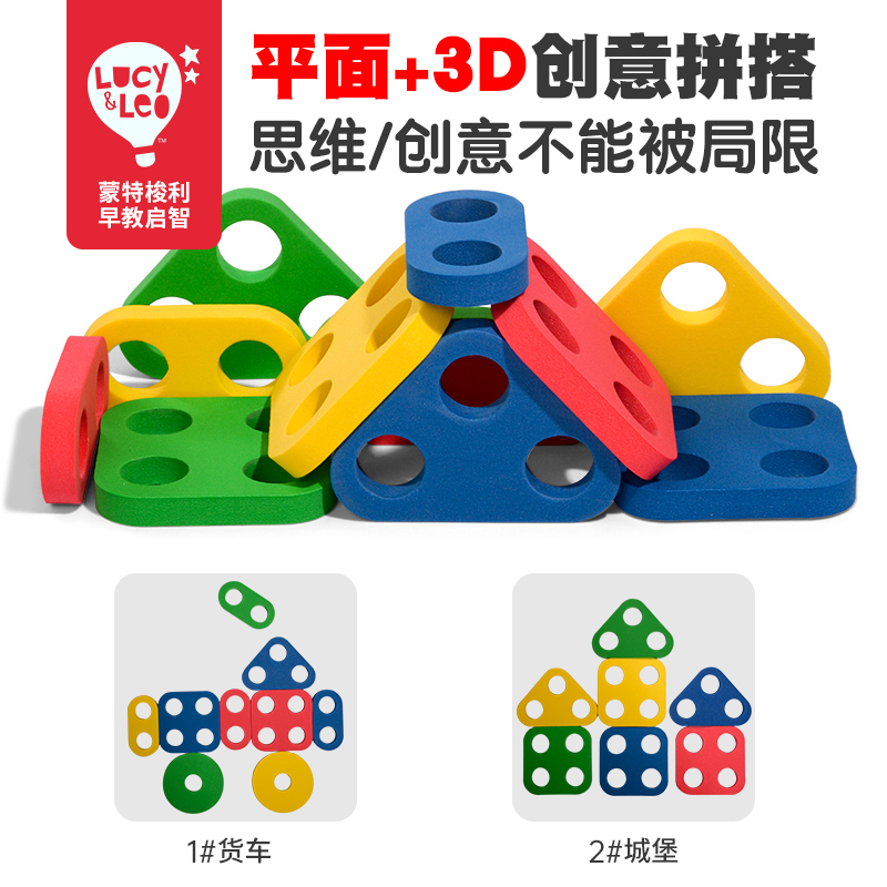 LucyLeo Young Children Shape Color Pairing Eva Building Blocks Baby Boy Girl 1-3 ½ 4 Wooden Toys