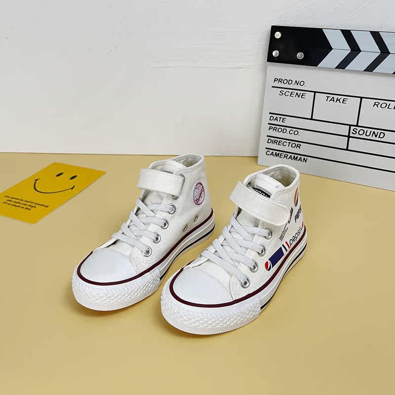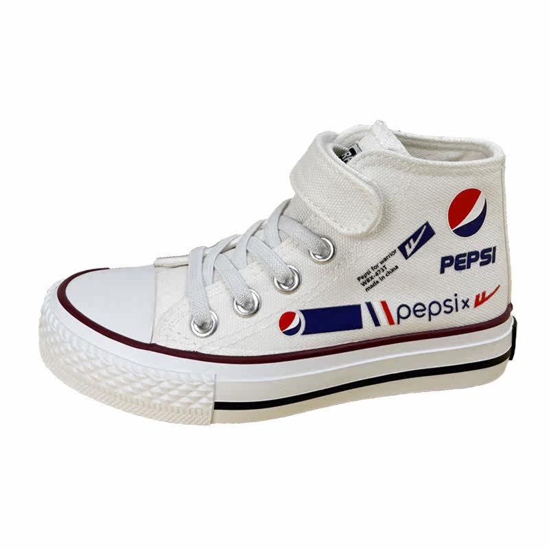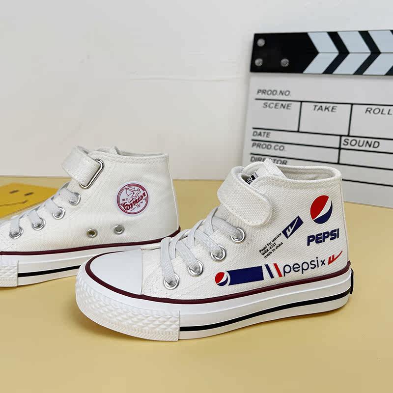 Pull back children's high-top canvas shoes Pepsi co-branded girls' shoes 2022 spring new boys' white shoes