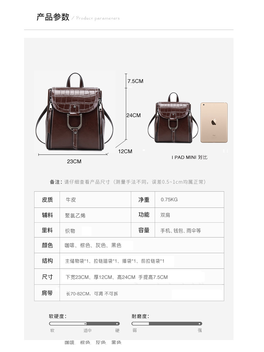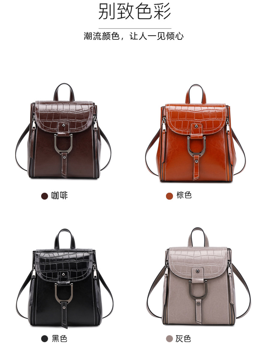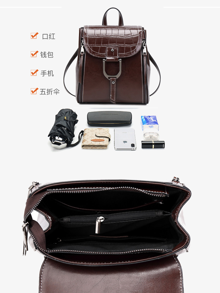 Women's leather shoulder bag foreign style simple fashion high-level sense cowhide casual all-match oil wax hand-held trendy small backpack