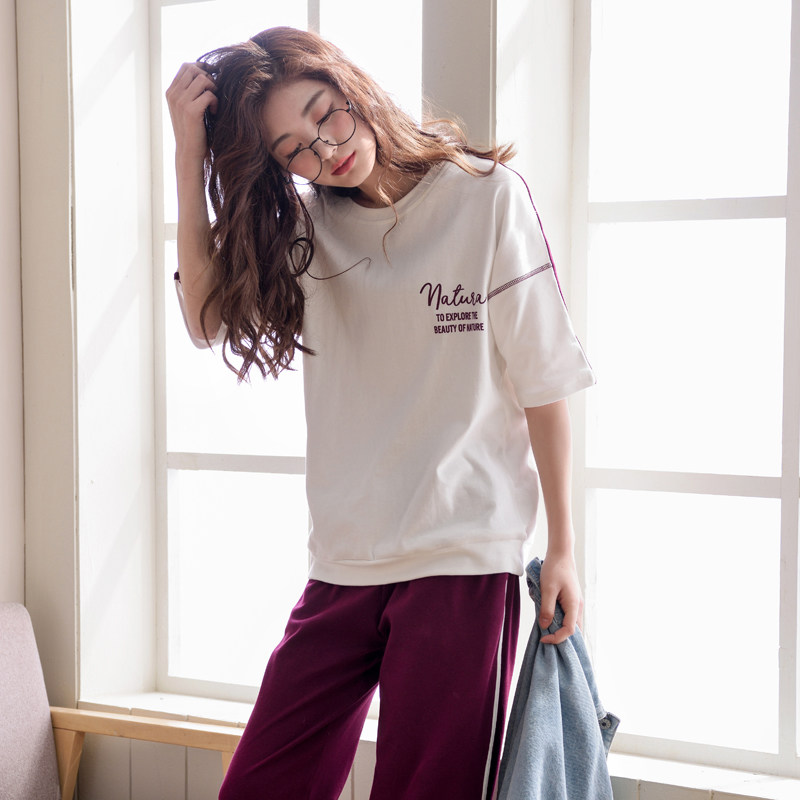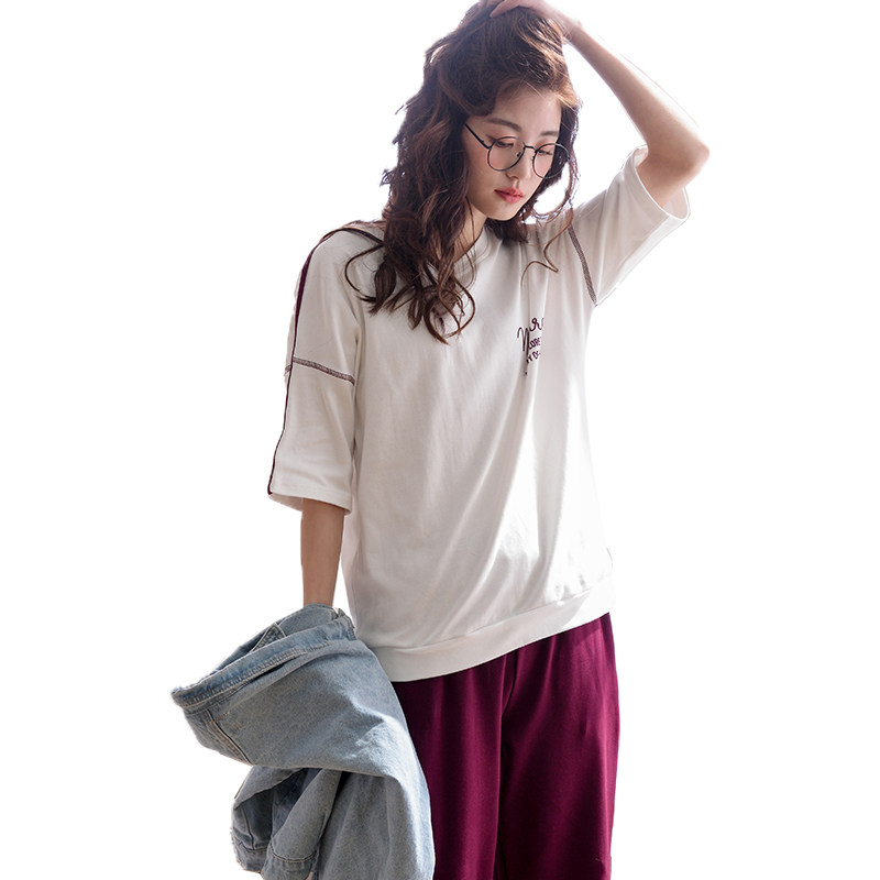 Small Love Song Pajamas Woman Summer Pure Cotton Short Sleeves Seven Pants Thin minimalist summer Home Residence Suits Extras-Taobao