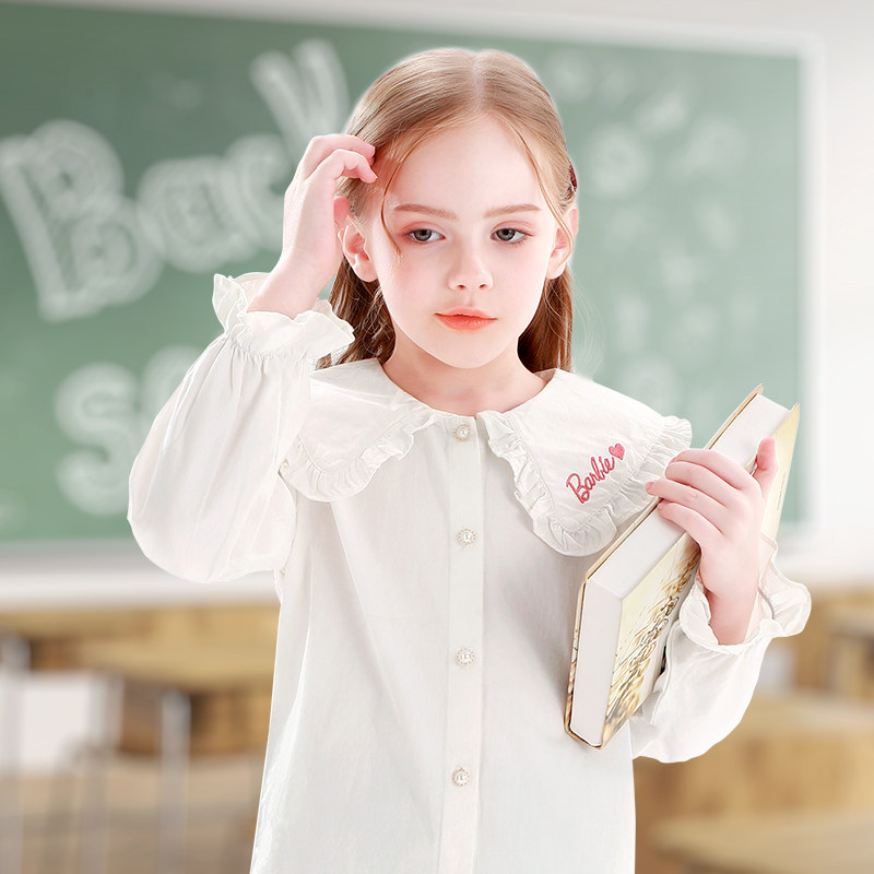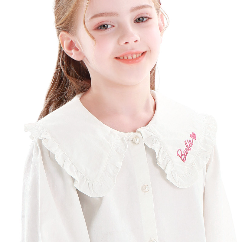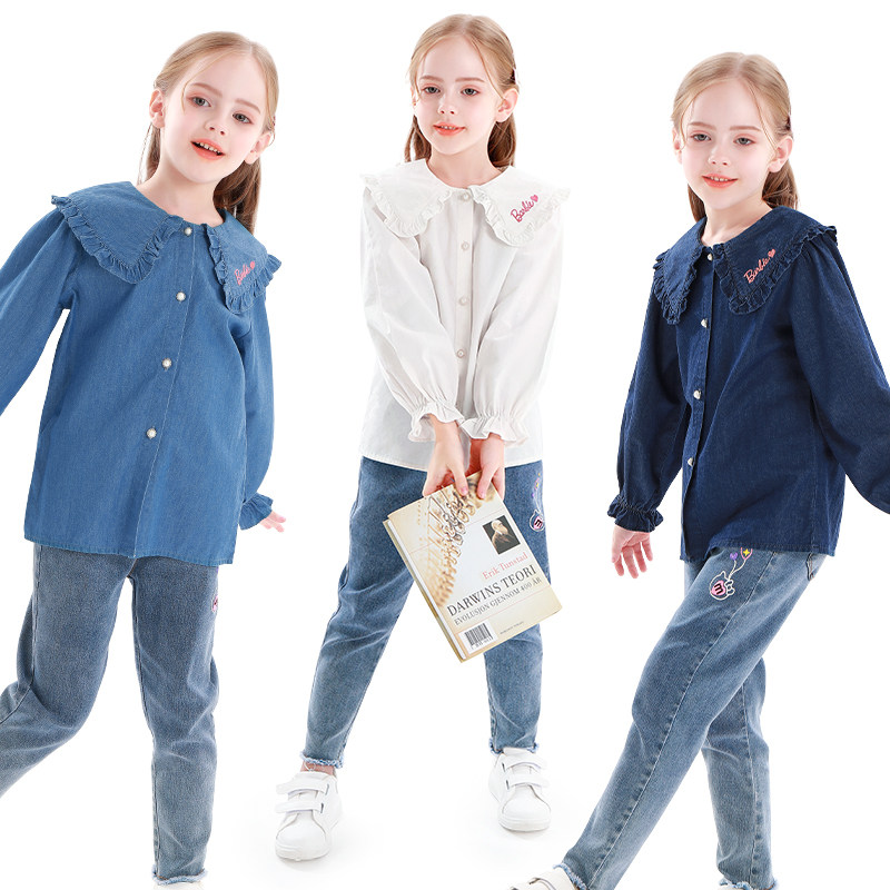 Barbie Girl Denim Shirt Pure Cotton Spring Autumn Clothing 2022 New Yangpie Children's shirt CUHK Doll Collar Blouse