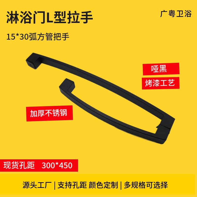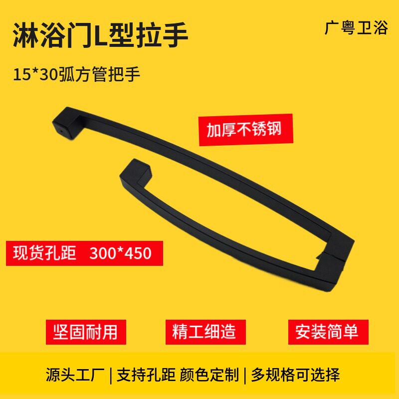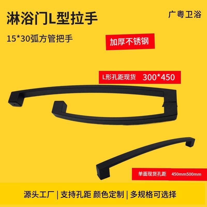 Shower room glass door push-pull sliding door L-shaped handle surface-mounted arc square stainless steel bathroom handle 300*450 hole spacing