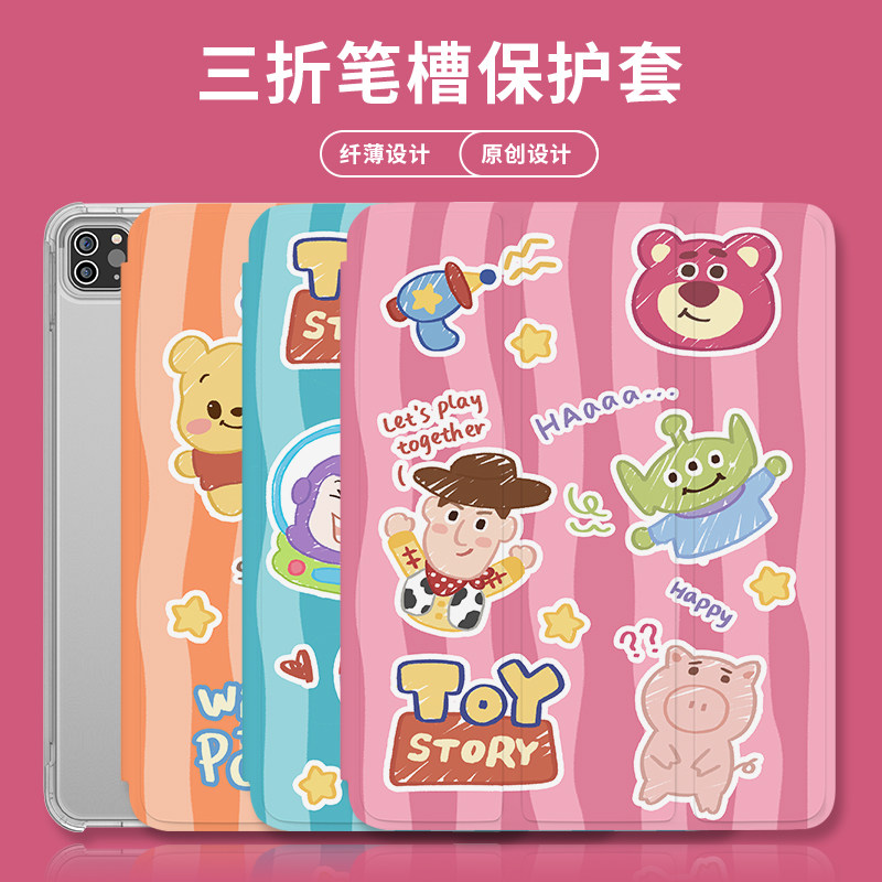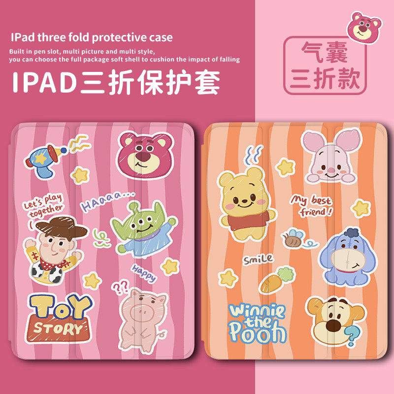 Elegant suitable for ipad9 protective sleeve trifold 2021 new iPad transparent airbag 10 2 cartoon flat ippro with pen slot pink adorable mini6 flat shell