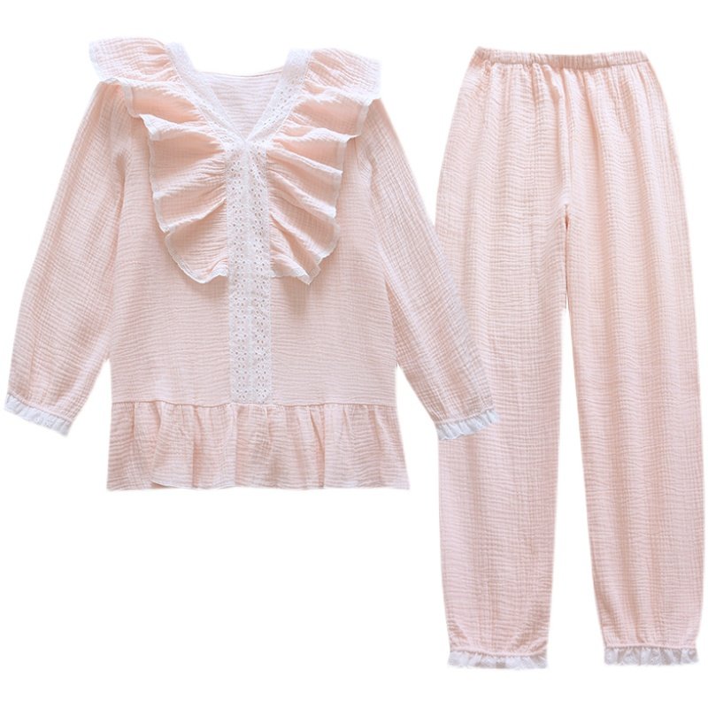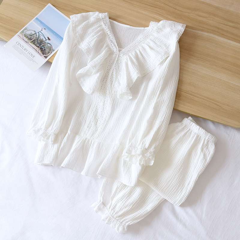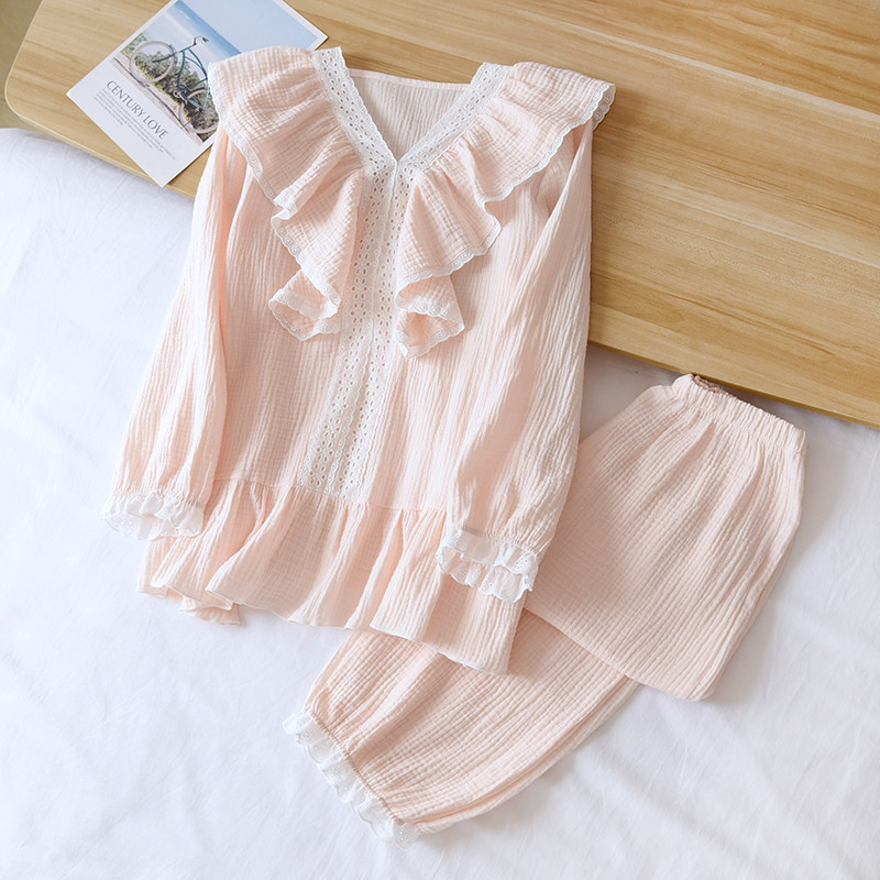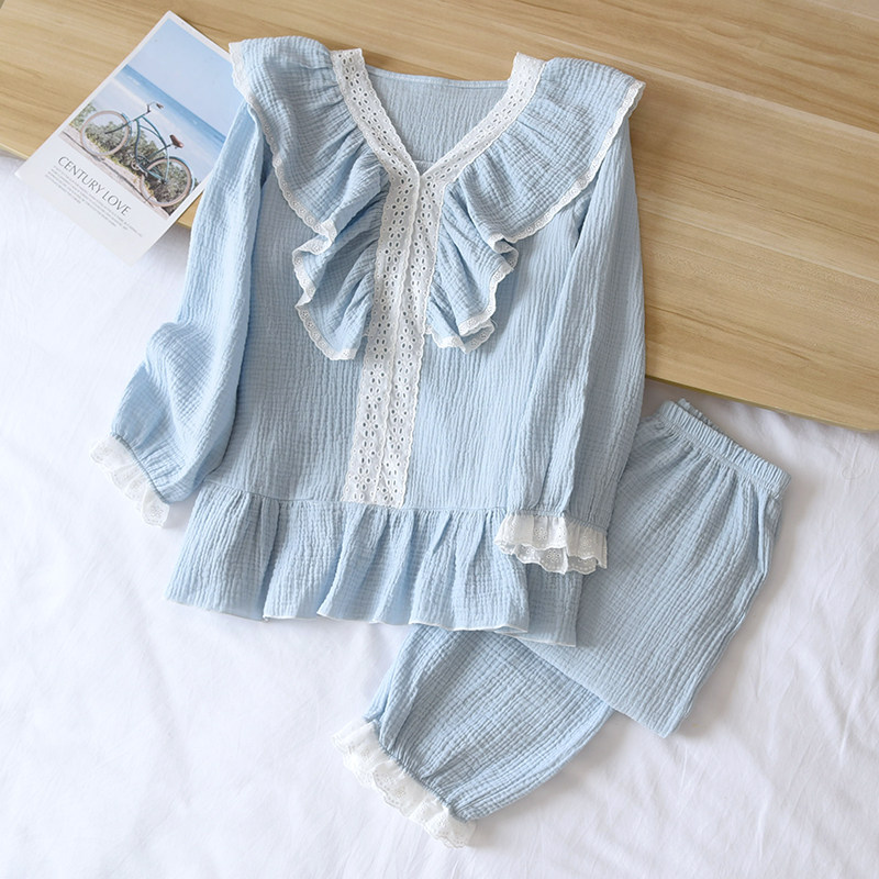 Palace Wind Sleepwear Women 2023 New Fashion Spring Autumn Season Small Fragrance lace with long sleeves pure cotton cotton cloth Home Costume-Taobao