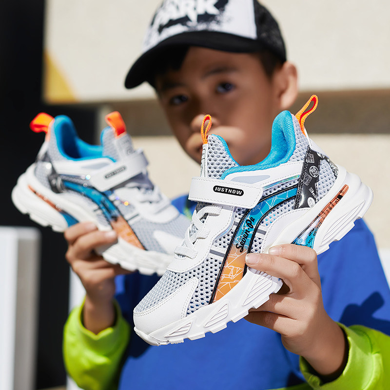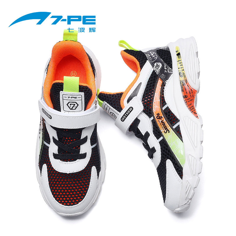 Seven Wave Glow Shoes Boy Sneakers 2022 Spring New Web Shoes Breathable Mesh Surface Hollowed-out Big Children Shoes Running Shoes