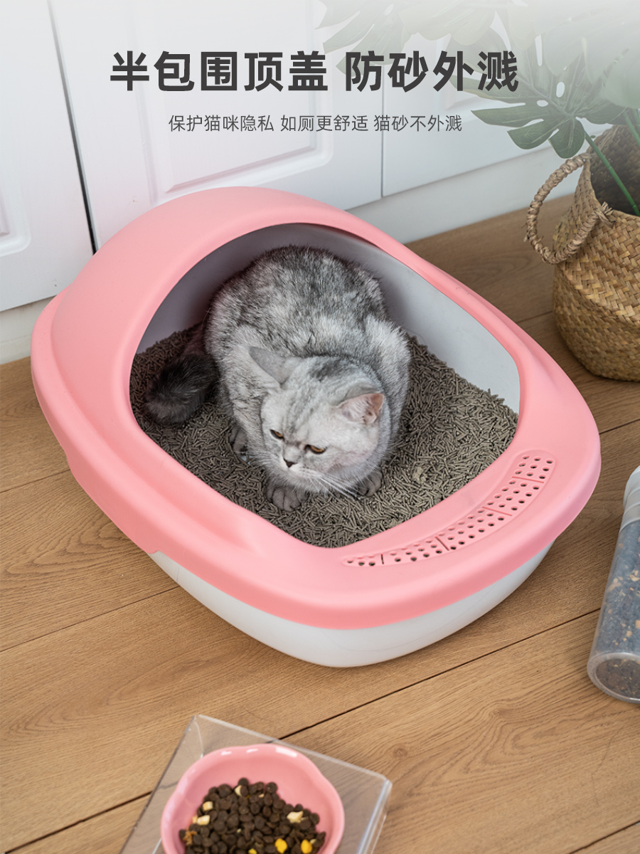 Cat litter box oversized semi-enclosed cat toilet odor-proof cat litter anti-splash half-pack cat feces basin cat supplies