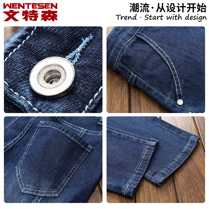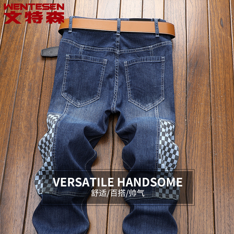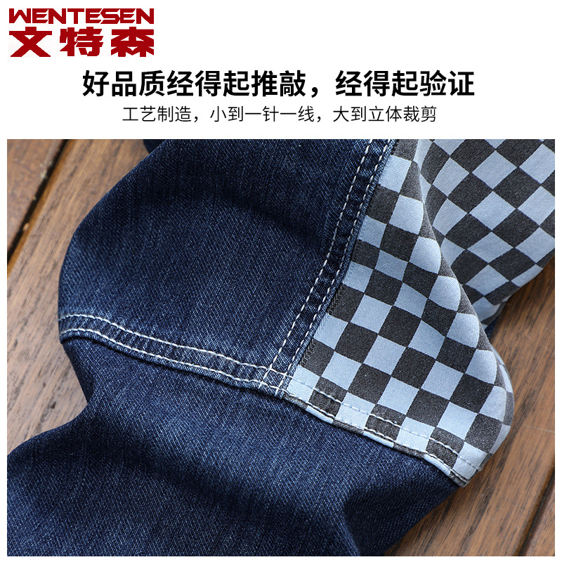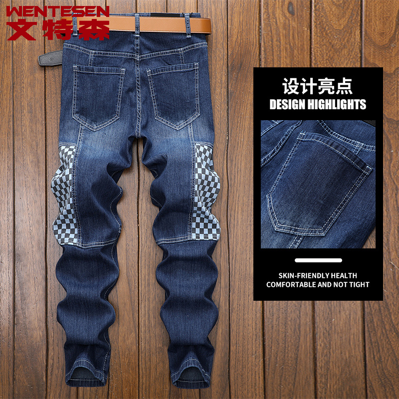 Youth jeans men's slim stretch long pants men's autumn 2022 new Korean version of the tide brand stitching men's pants