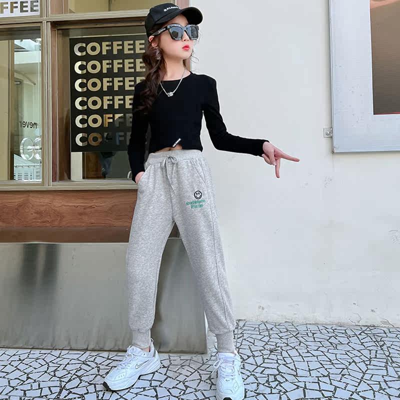 Girl Grey Sweatpants Spring Autumn Outwear CUHK Child Loose Sports Pants Spring New Children Bunches Casual Pants Tide