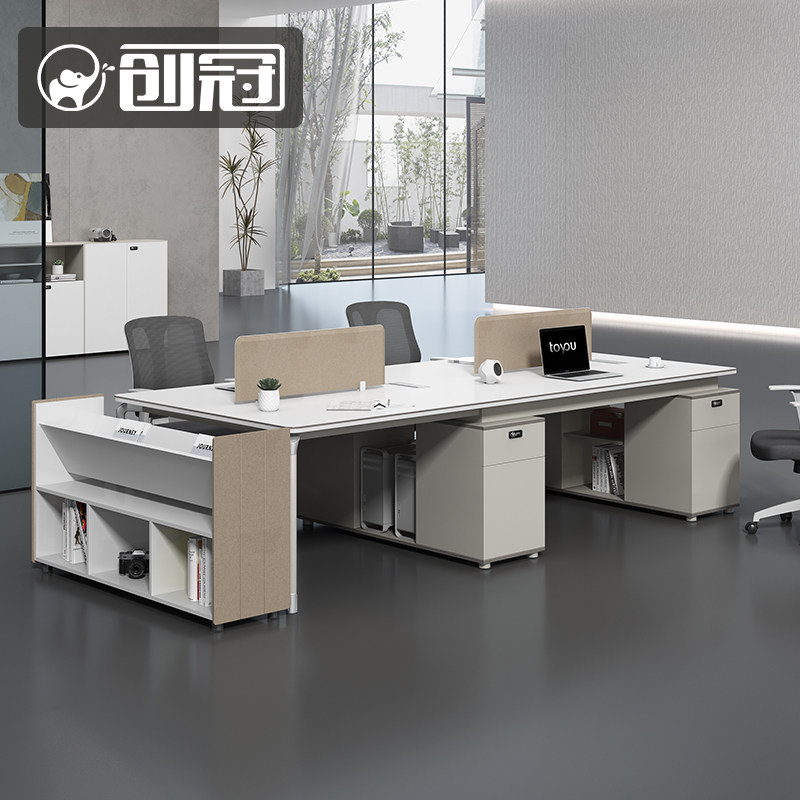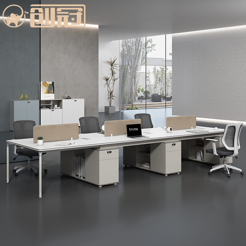 Brief Modern Staff Desk Chair Composition 2 4 6 People Office Staff Screen Station Computer Desk