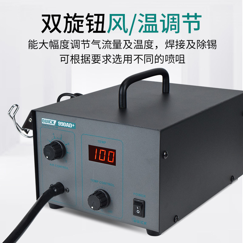 QUICK Quick-gram hot wind gun 990AD digital display thermoregulation high-power industrial SMT patch back repair hot wind dismantling and welding table