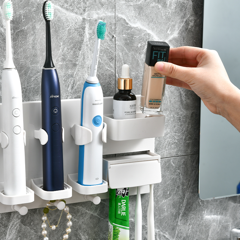 Toothbrush Containing layer Shelf Three-mouth Home Electric Toothbrush Shelve free wall-mounted Wall-mounted Makeup Room Toothpaste Containing box