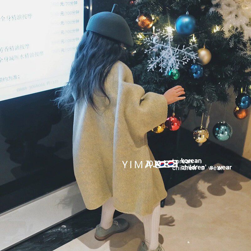 South Korean boy clothes small fragrant wind girl's wool jacket thickened 2022 autumn and winter style Children's foreign-side cashmere big coat