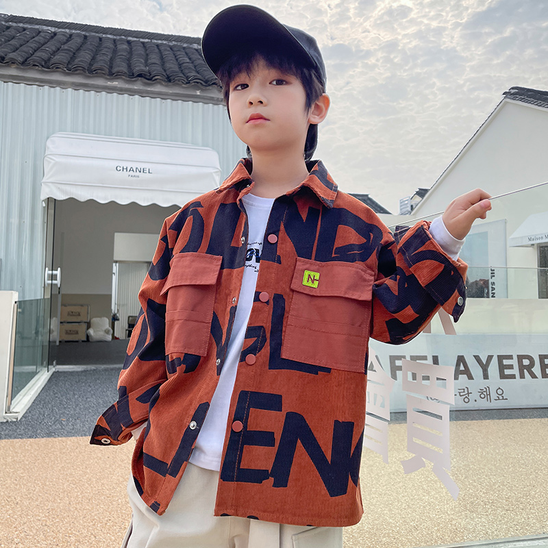 Boy Shirt 2022 Spring Dress New Children Foreign Palate Middle School Boy Long Sleeve Shirt Handsome Gas Fried Street Boy Blouse Tide