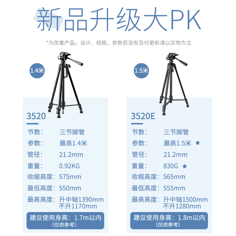 Weifeng 3520E tripod single eye photography camera portable micro single eye camera camera tripod phone self-shooting live bracket 360 degrees rotary multifunction photo outdoor main cast beauty and finish light frame