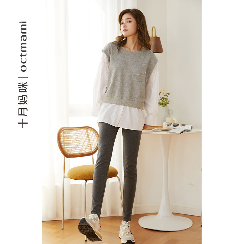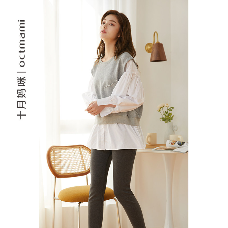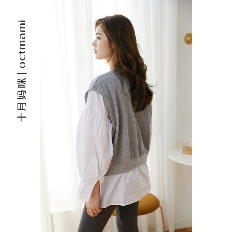 (Special Cabinet Identical) October mommy new pregnant women spring out for a casual stay in a pure color shirt splicing thick T-shirt