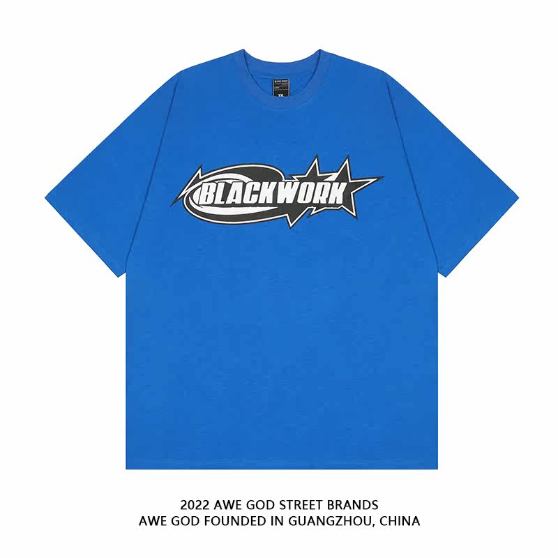 AWE GOD American street Klein blue white short-sleeved men's and women's summer new trendy couple casual T-shirt