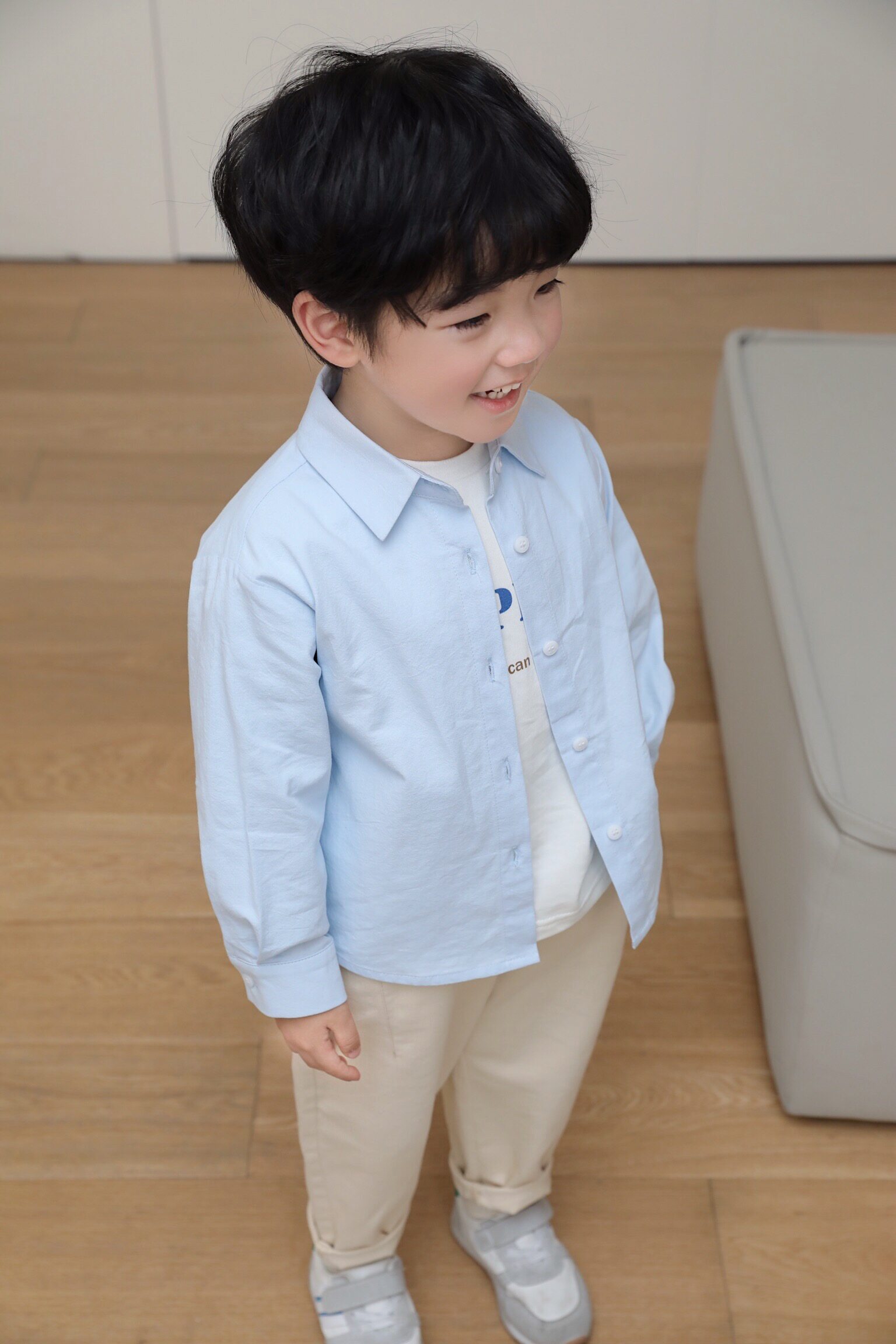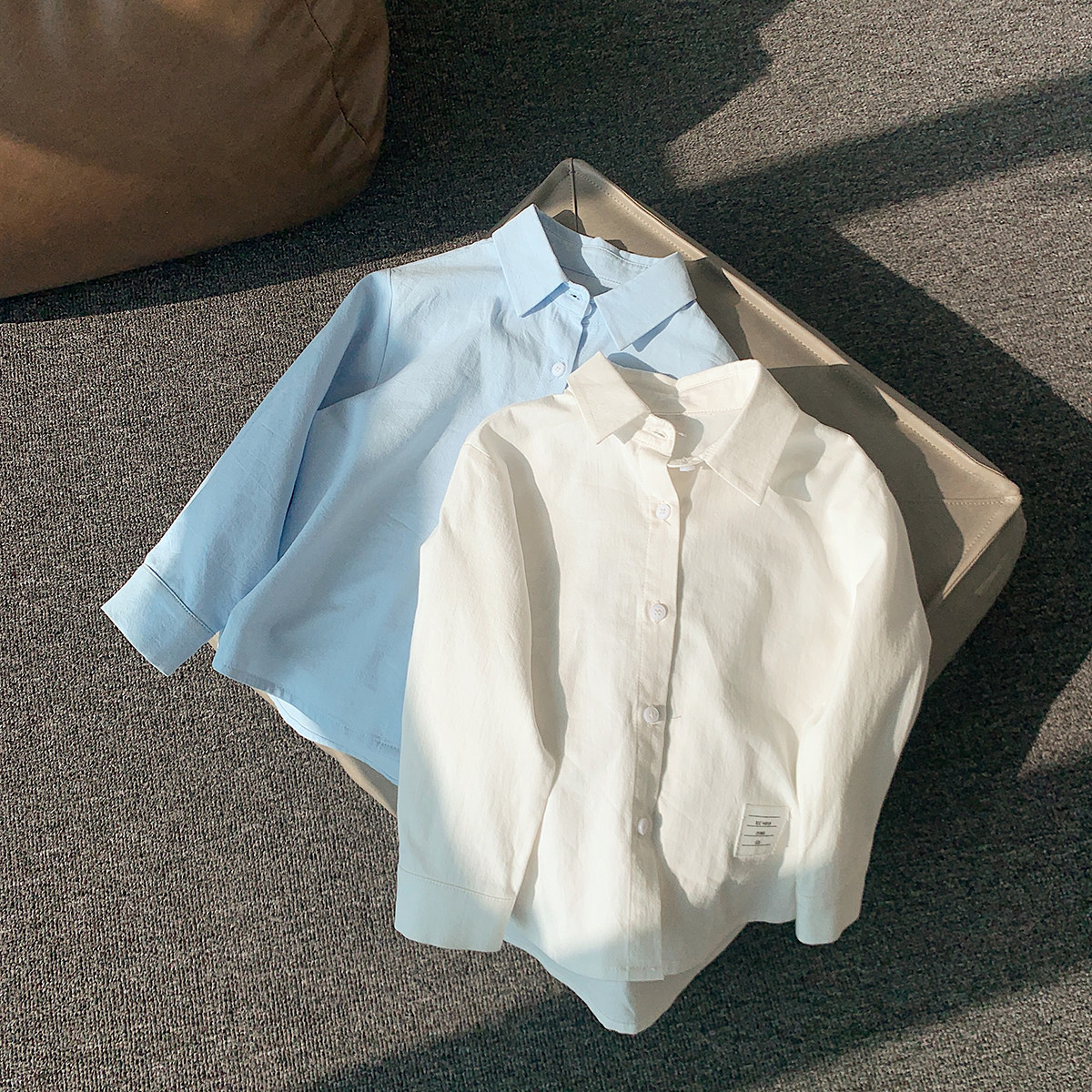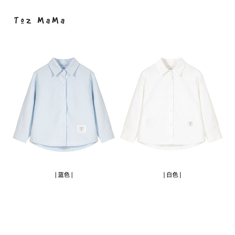 Beans a few moms children cotton fabric shirt 2022 spring dress new Korean version boy baby handsome long sleeve shirt tide
