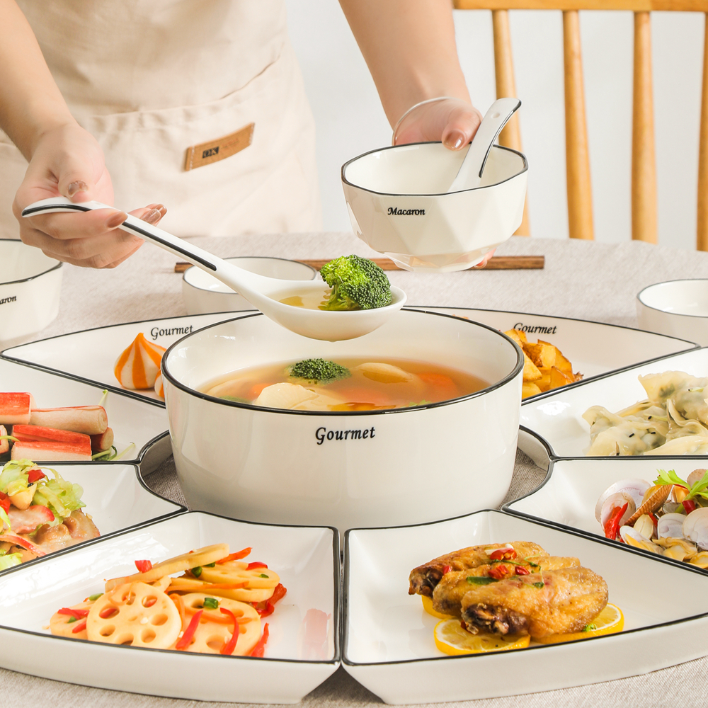 Big spoon 8-inch soup bowl Little spoon(2) 9-inch soup bowl 8 5-inch tai chi plate 10 5-inch fan disk 8-inch plum plate 2 5L casser 4