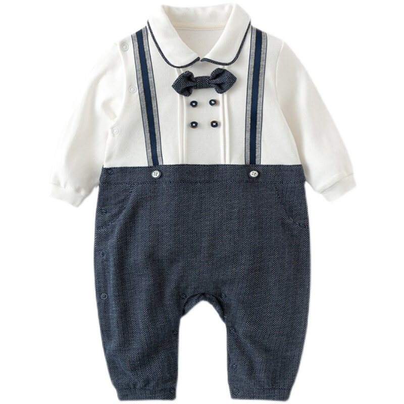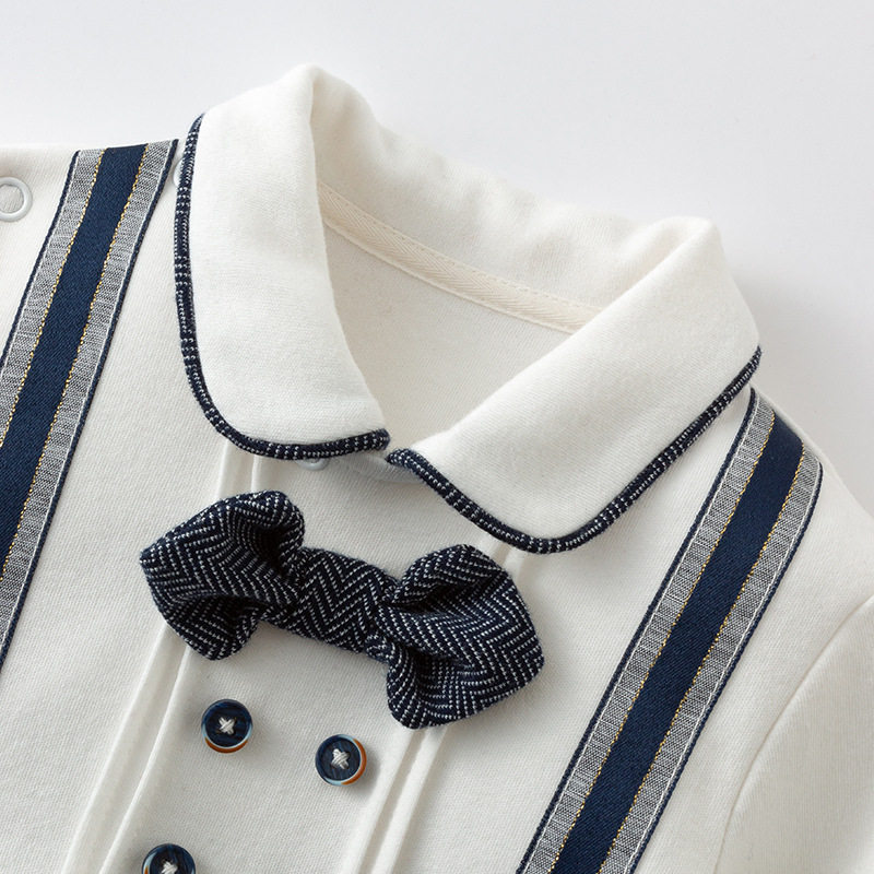 AuroMesa baby spring new neckline gentleman even body clothes man's treasure all-cotton fake two handsome gown