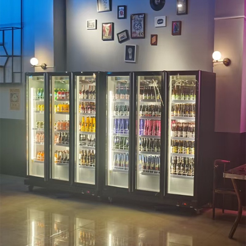GanSnow Beer Cabinet Freezer Commercial Fridge Bar Four Doors Wine Cabinet Supermarket Drinks Cabinet Three Doors Refrigerated Display Cabinet