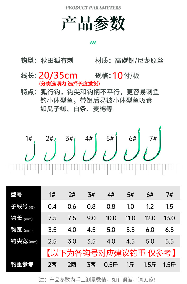 Imported sub-line double hook tied crucian carp hook white strip wild fishing small goldfish hook Akita fox hook set finished product