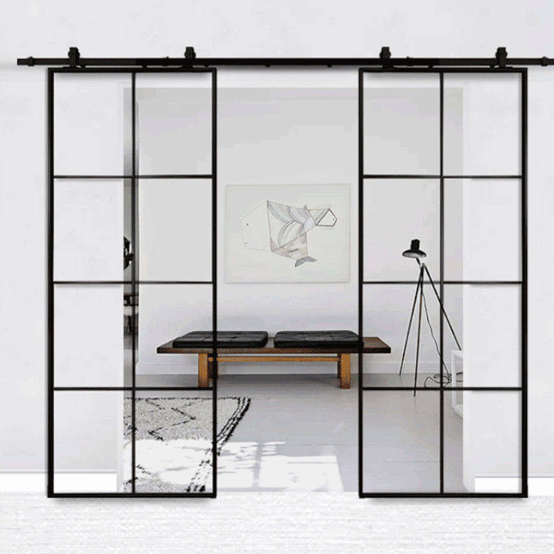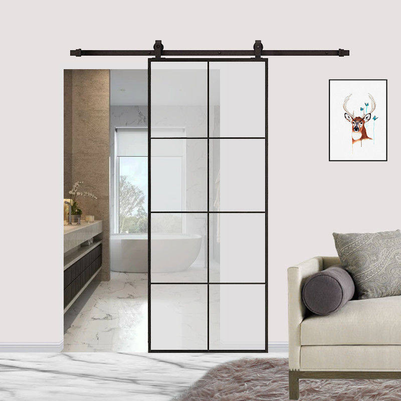 Kitchen sliding door slide rail modern minimalist powder room hanging wheel glass door invisible barn door aluminum alloy Nordic