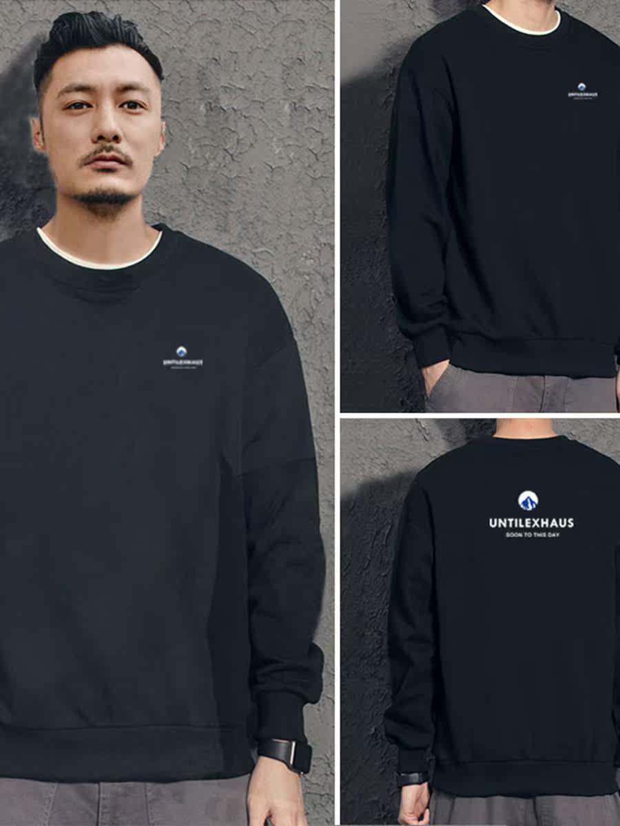 Men's round neck sweater 2022 spring, autumn and winter new cotton men's long-sleeved t-shirt plus velvet thick bottoming shirt top