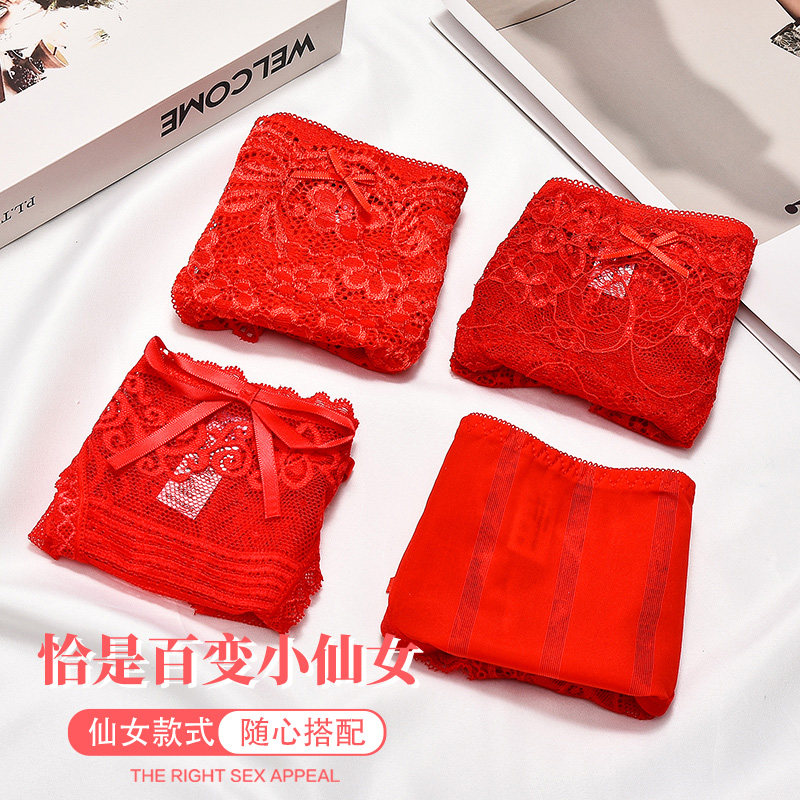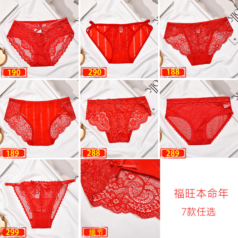 Red underwear female animal year female tiger sexy lace pure cotton file low waist lady sexual confusion pure desire Year of the Tiger gift