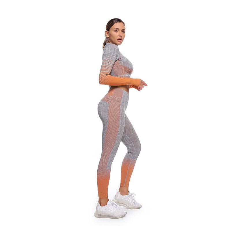 Women's fitness sportswear yoga suit European and American stripes new knitted hip-lifting seamless high elastic