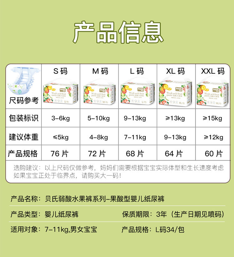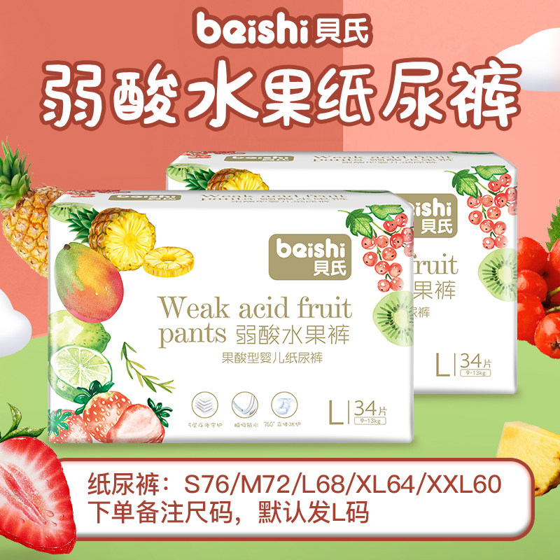 Bayesian weak acid fruit baby diapers xxl ultra-thin breathable dry baby diapers pull-up pants m flagship store