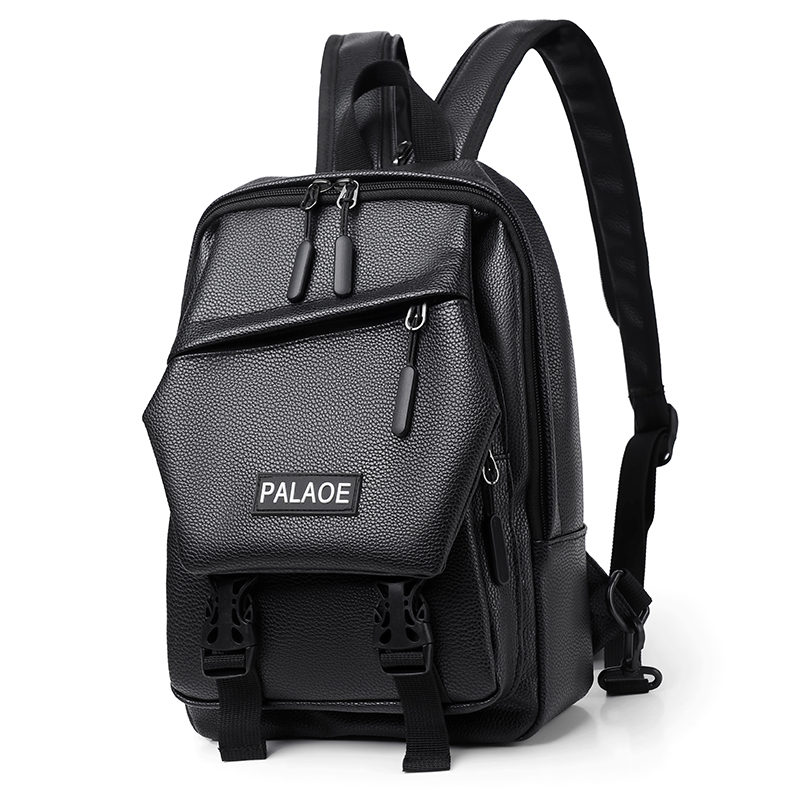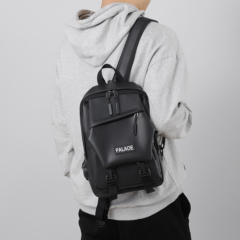 Small backpack men's multifunctional PU soft leather shoulder messenger bag dual-purpose chest bag tablet computer IPAD backpack