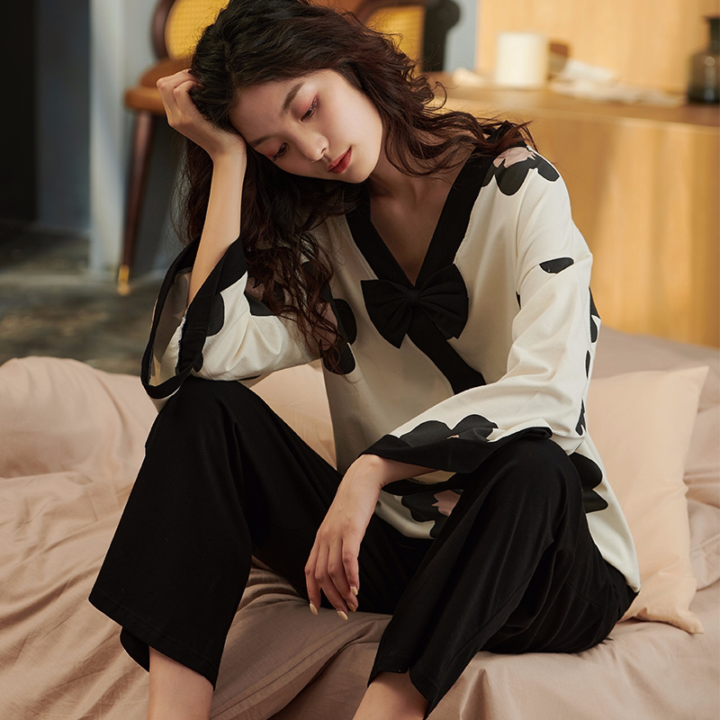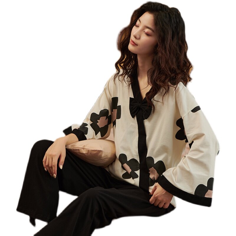 Japanese GP pajamas women's spring and autumn 2022 new Japanese style V-neck long-sleeved can be worn outside the homewear suit