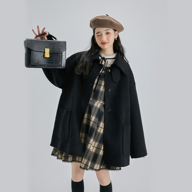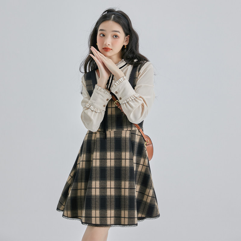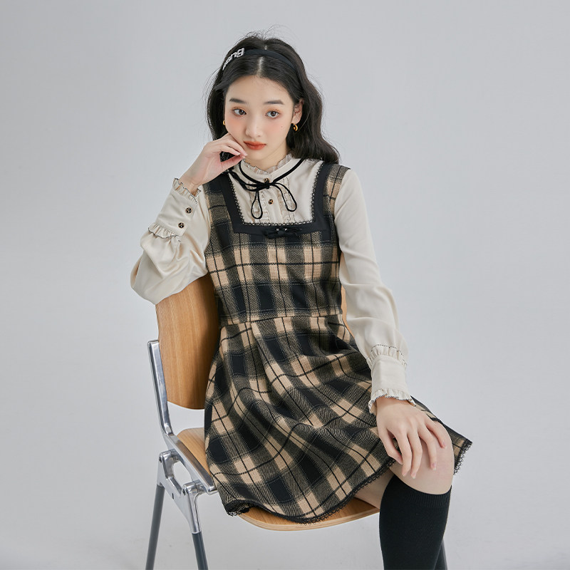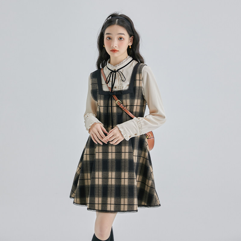 Small deer's puff quiet black rose brown striped plaid butterfly knot harness foreign dress