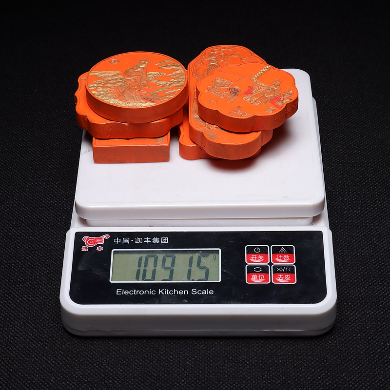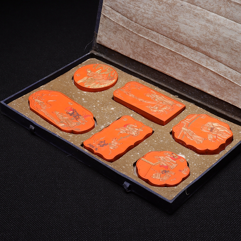Imitation of the Chinese zodiac, Ming Dynasty ink spectrum mold, old objects, re-engraved ink 1091 grams of fine cinnabar ink set of 6 ingots