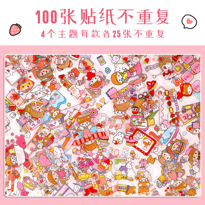 100 WATERPROOF HAND LEDGER STICKER SUIT INWIND HIGH FACE VALUE CUTE CARTOON GIRL CHILD REWARD APPLIQUED BOOK KOREAN VERSION WITHOUT MARK ADHESIVE GIRL HEART A WHOLE BOX DIY DECORATIVE MATERIAL SMALL PATTERN