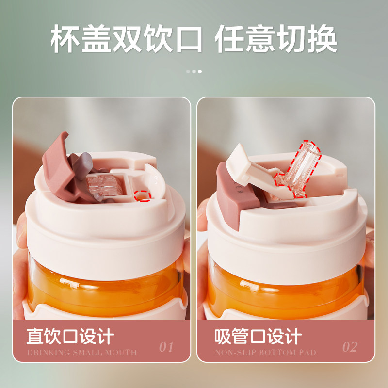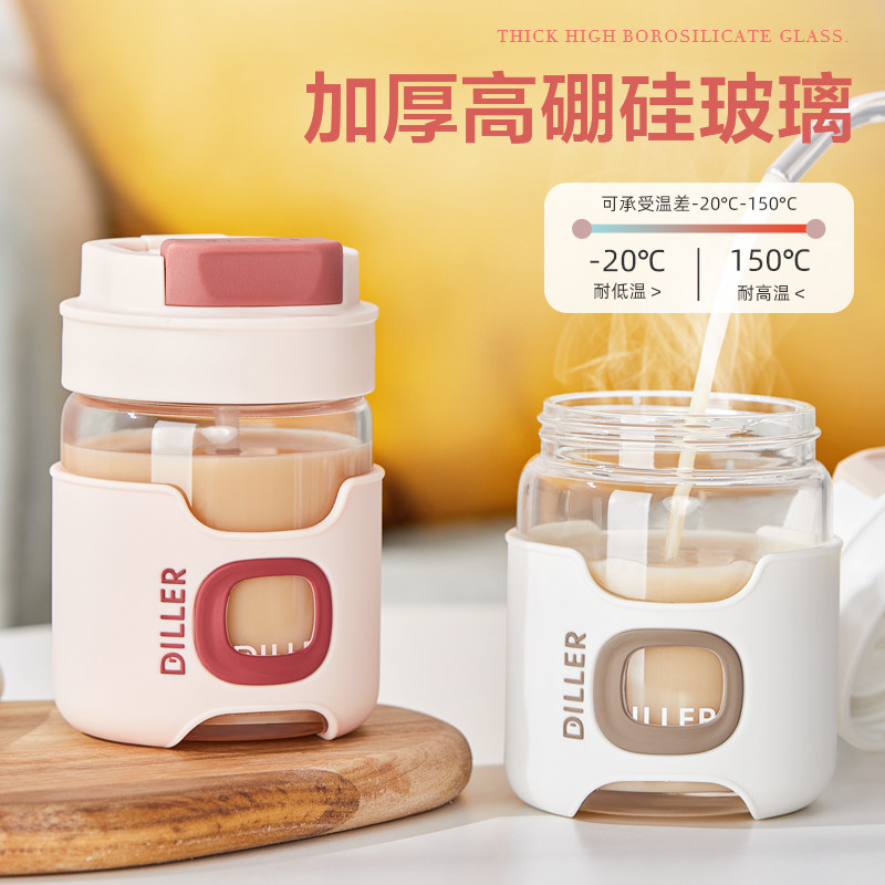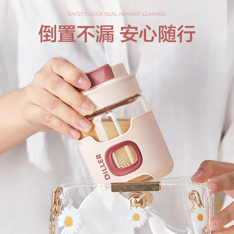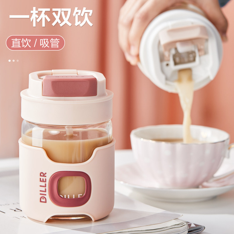 Swedish cica glass water glass female summer with straw high face value portable Jane about double drinking coffee cup accompanying cup
