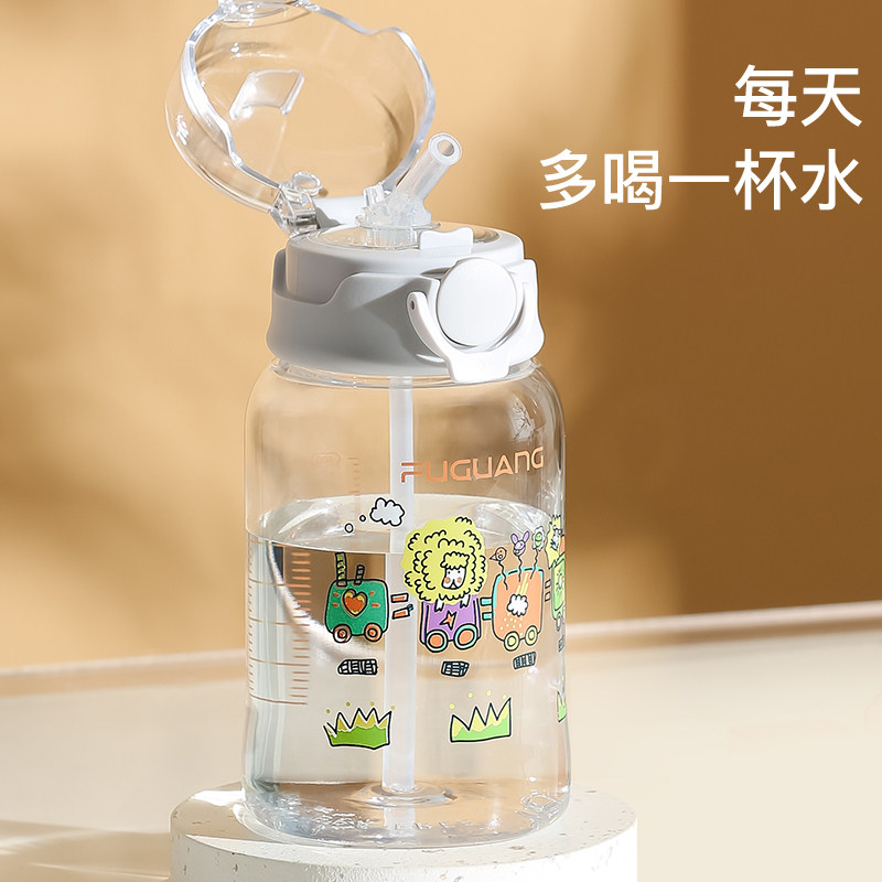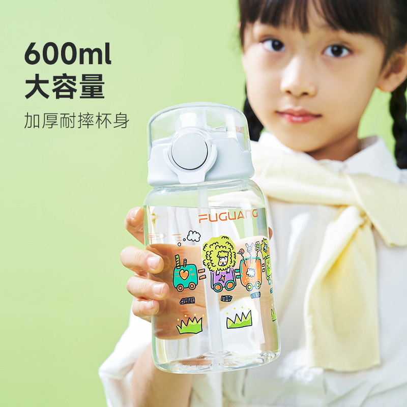 Fuguang children's water cup with straw female student tritan portable plastic water cup summer kindergarten school special