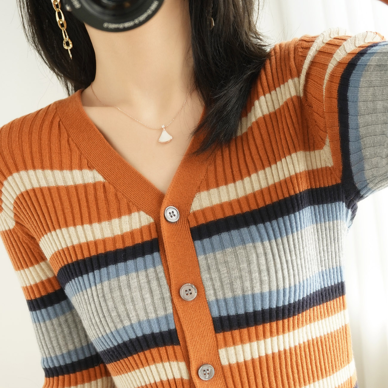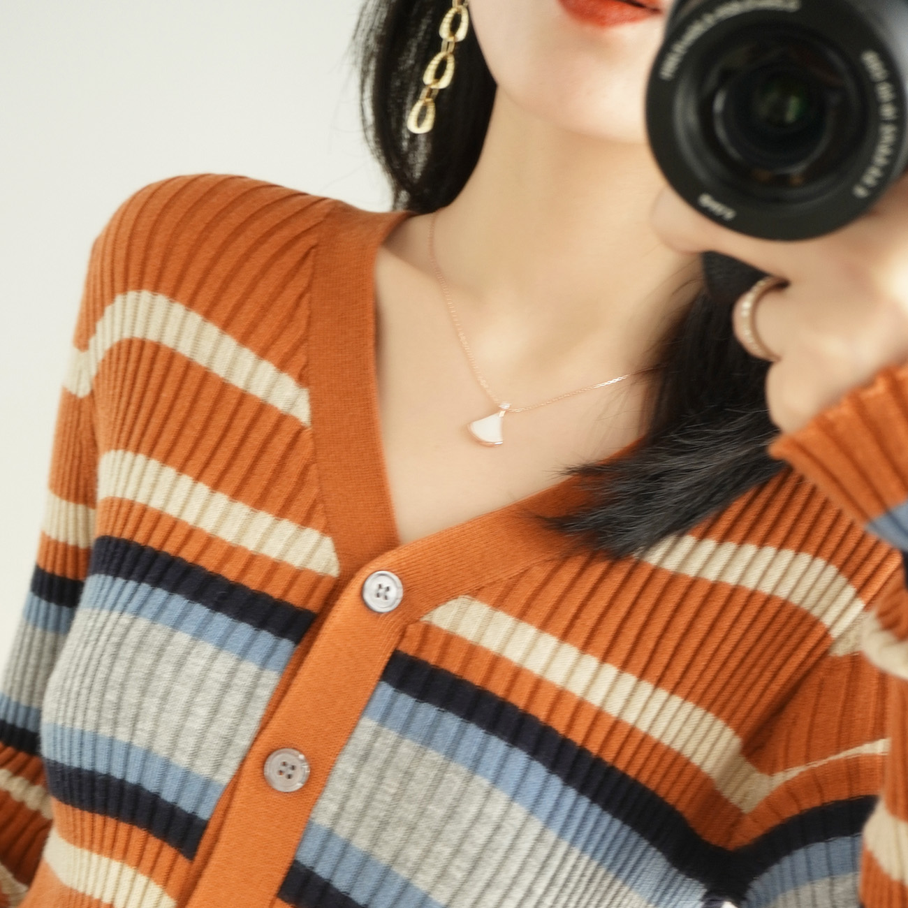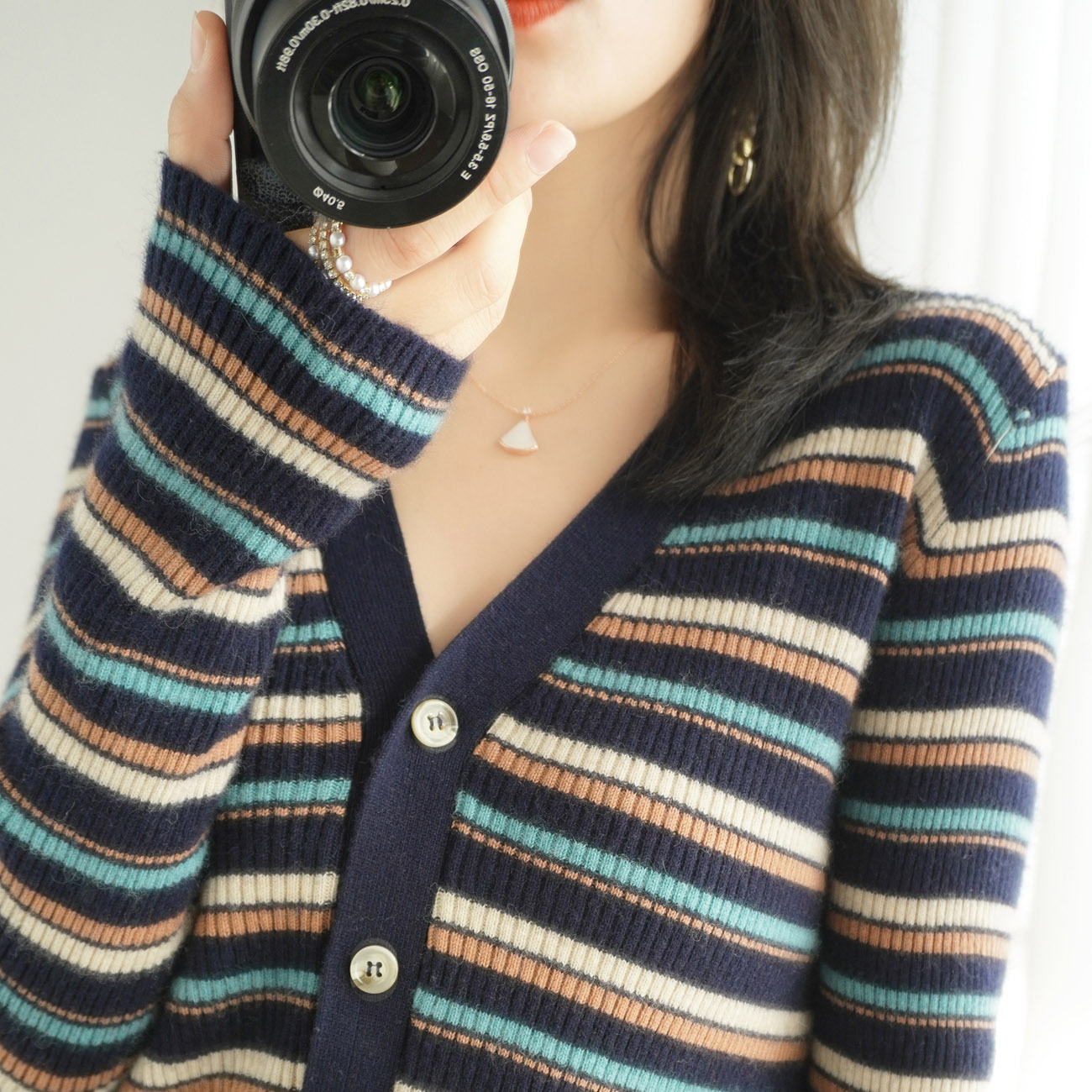 New outlay wool knit cardiovert woman V collar jacket spring autumn season swarm fashion short Non cashmere beating undershirt