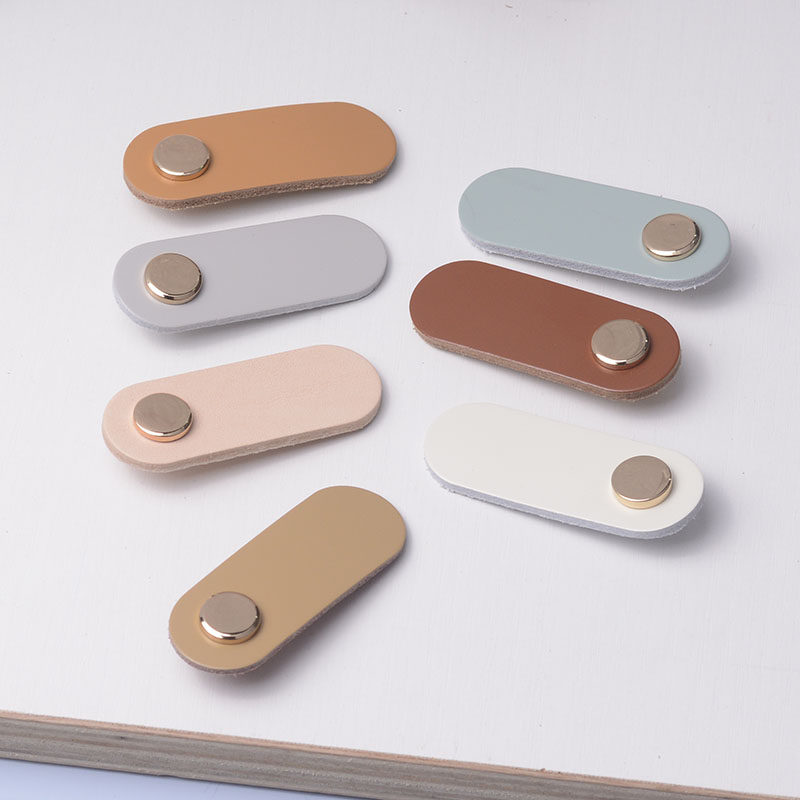 Genuine leather single-hole dark handle moving door wardrobe internal drawer invisible leather shoe cabinet door small handle European style brief Bull Leather