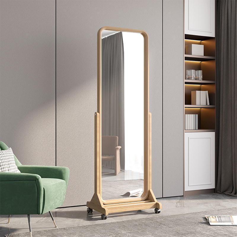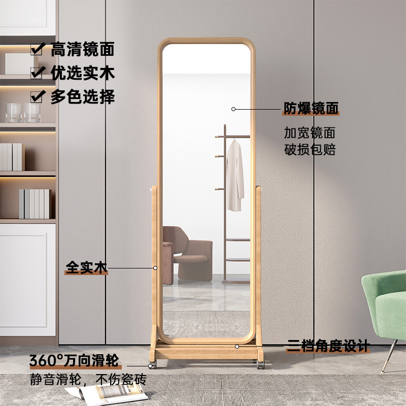 Solid wood full-length mirror floor-to-ceiling mirror home girls bedroom full-length mirror full-length mirror ins wind simple mobile large mirror