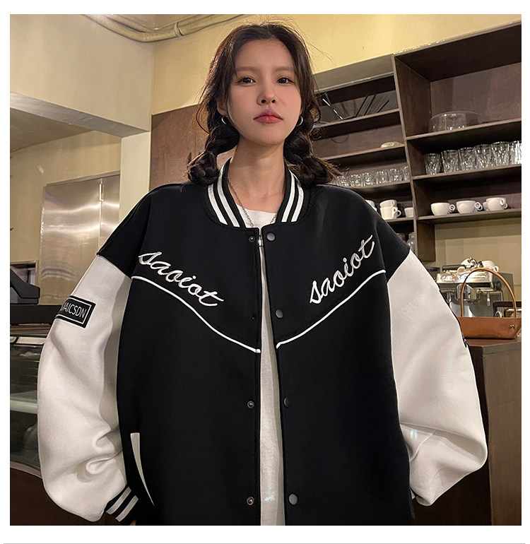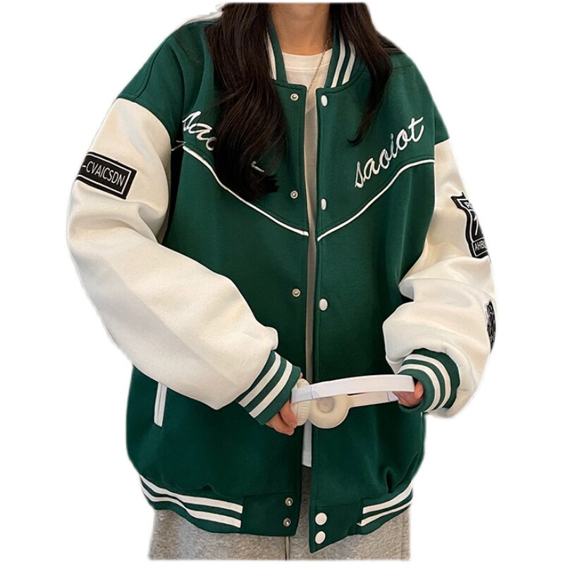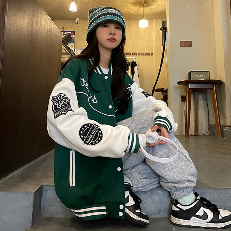 Large size BASEBALL SUIT WOMAN SPRING AUTUMN NEW 200 CATTY SISTER DESIGN SENSATION SMALL CROWD STREET JACKET LONG SLEEVE CARDIGAN WAVE